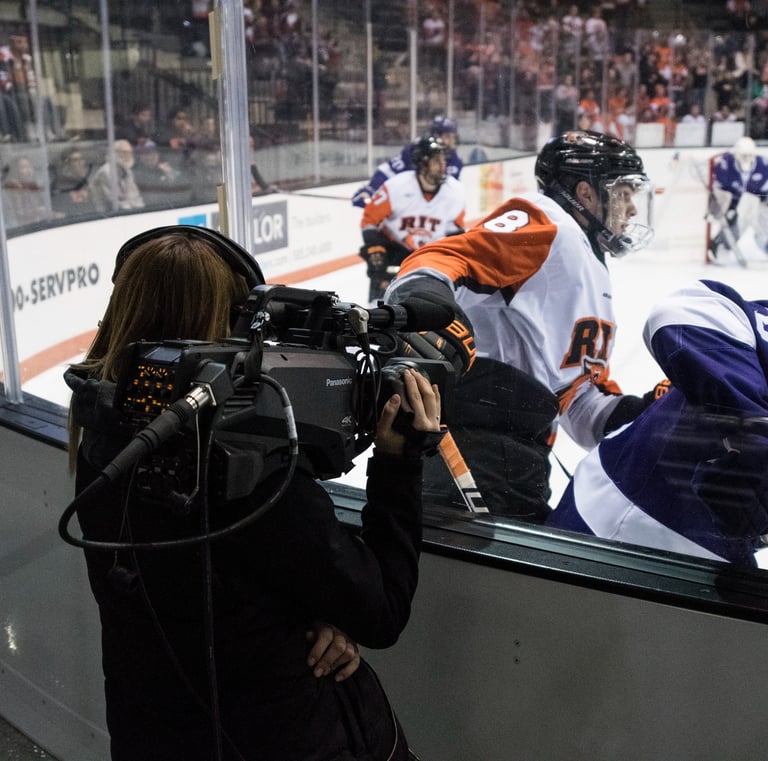 My work centers on leading high-level, live sports and university productions while developing people and systems around them. As Executive Producer/Director for RIT Sports Network and head of the university’s video department, I oversee everything from concept and creative direction to engineering, staffing of Five RIT full time staff and over 70 student workers, and multimillion-dollar budgets, all while delivering broadcasts that meet regional and national standards. Alongside this, I teach digital video and sports media production as an adjunct professor, using real-world productions to mentor students and build the next generation of crew and producers.